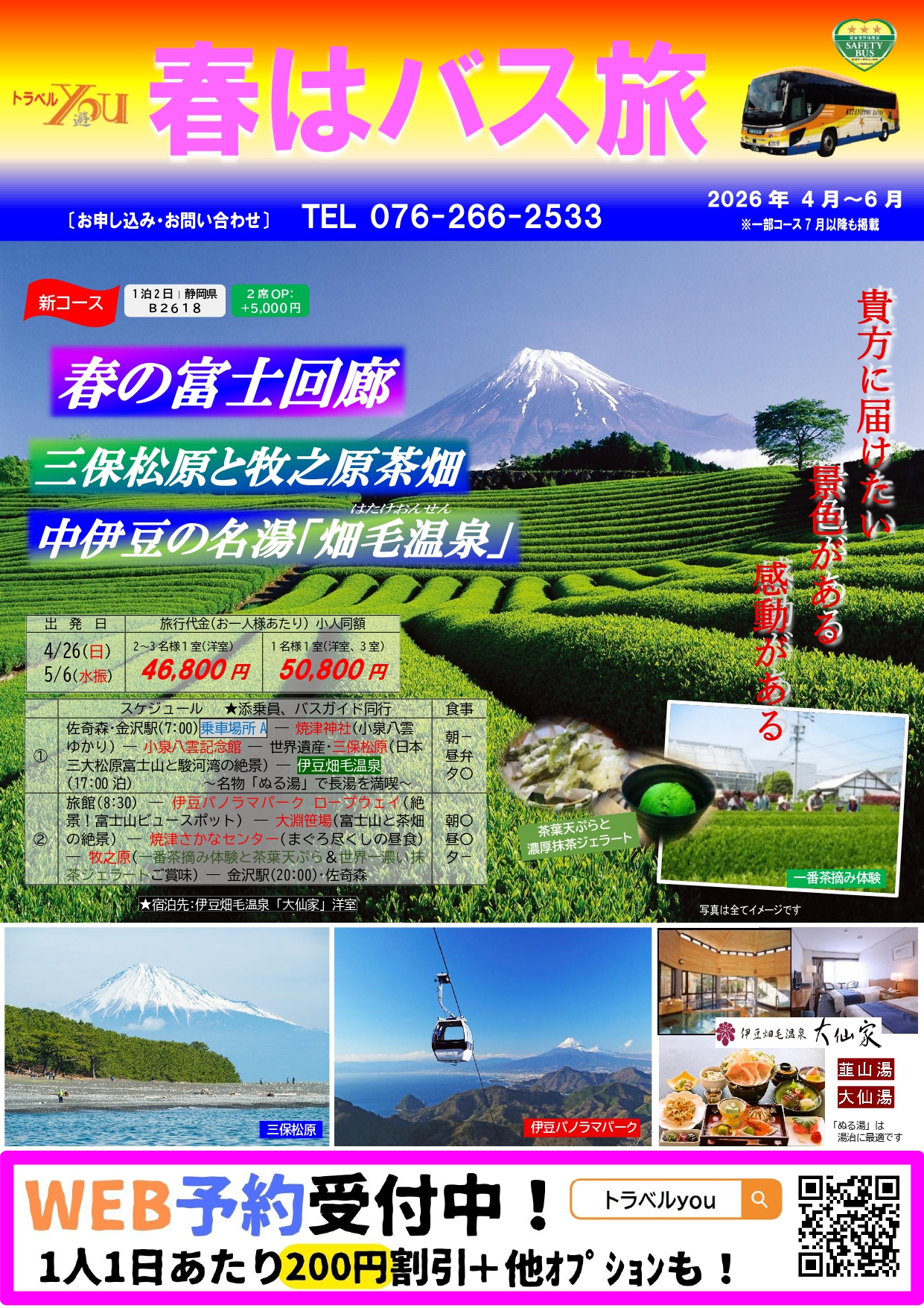 春パンフレット完成しました! お花見から初夏のさくらんぼ狩り、離島ハイキングなど盛り沢山! 旅で能登を応援!今いける能登団体旅行応援キャンペーンの企画も 6コースご用意いたしました! 皆様のご予約をお待ちしております。